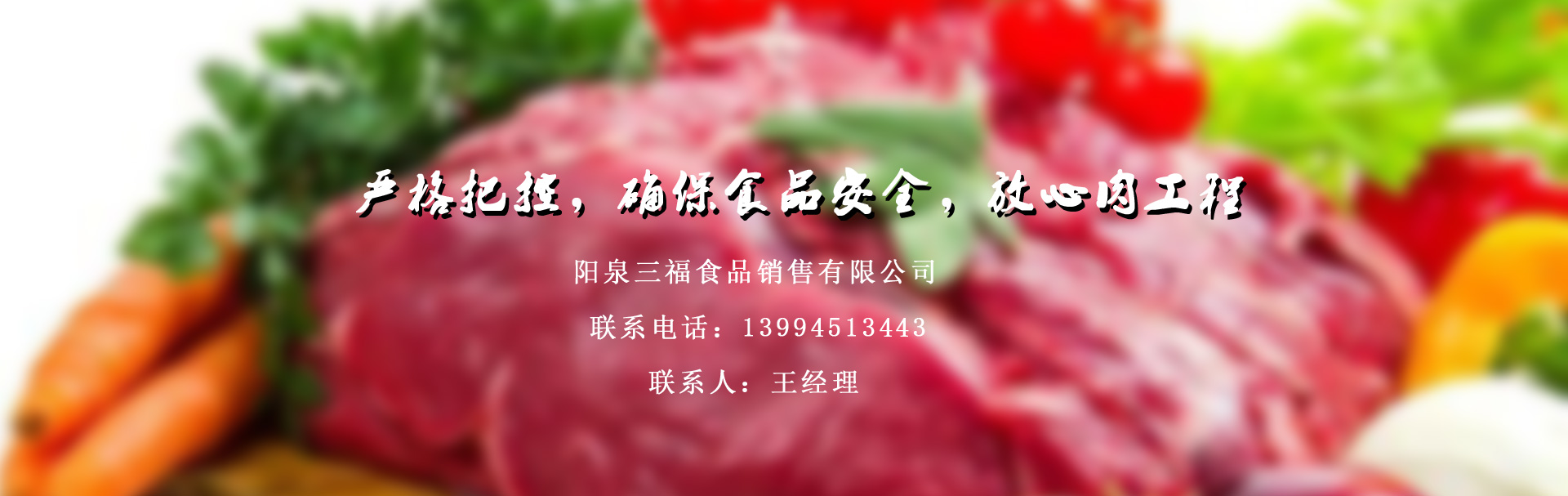 陽泉三福食品銷售有限公司成立于二零零六年九月,位于陽泉市城區(qū)桃南中路28號,資質(zhì)為一般納稅人,是政府批準的合法具有外調(diào)肉類的單位之一。在2012年獲得中國人民銀行頒發(fā)的AAA機構(gòu)信用代碼證。現(xiàn)主要提供以下供貨渠道:     1、 冷鮮肉類的批發(fā)     2、 凍貨...